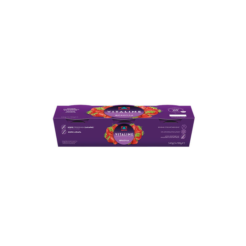 ΔΕΛΤΑ ΔΕΛΤΑ Vitaline Επιδόρπιο Γιαουρτιού Φράουλα με Στέβια 3X180γρ.