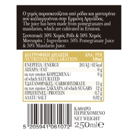 Ο 100% Φυσικός Χυμός Ρόδι Μανταρίνι παρασκευάζεται από ρόδια και μανταρίνια που καλλιεργούνται στην Ερμιόνη Αργολίδας.