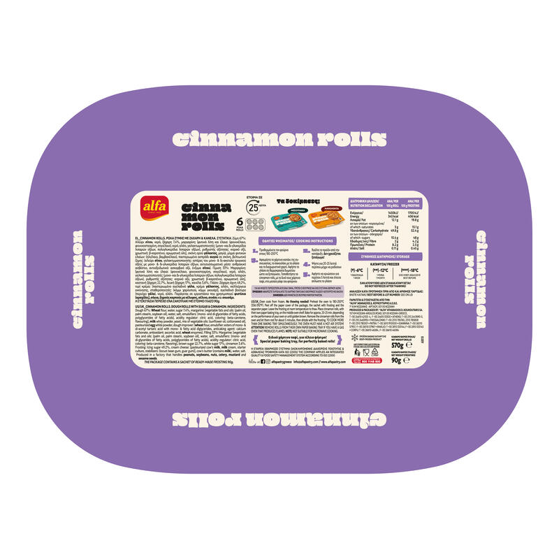 Στοιχεία προμηθευτή: Παράγεται και συσκευάζεται από την ALFA, ΑΘΑΝΑΣΙΟΣ Δ. ΚΟΥΚΟΥΤΑΡΗΣ Α.Ε.Β.Ε., 1ο χλμ Κοζάνης - Αργίλου, 501 00 Kοζάνη - Τηλ: 24610 42103-4, Email: info@alfapastry.com