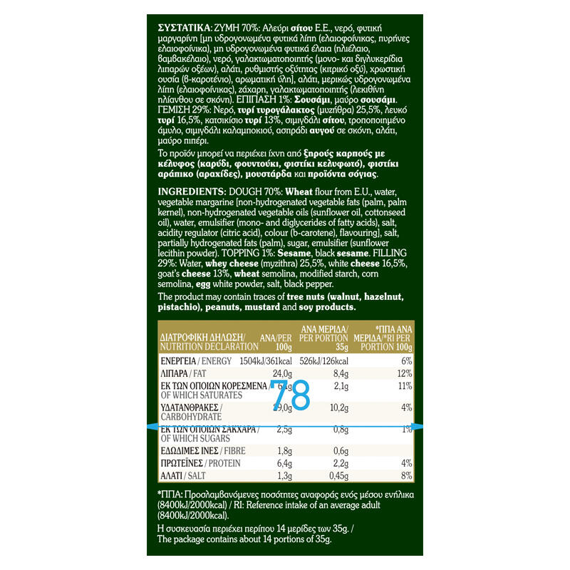 ALFA Κασσιάτα Ζαγορίου με Τυρί, Σπανάκι, Πράσο & Σέσκουλο ΚΤΨ 650gr