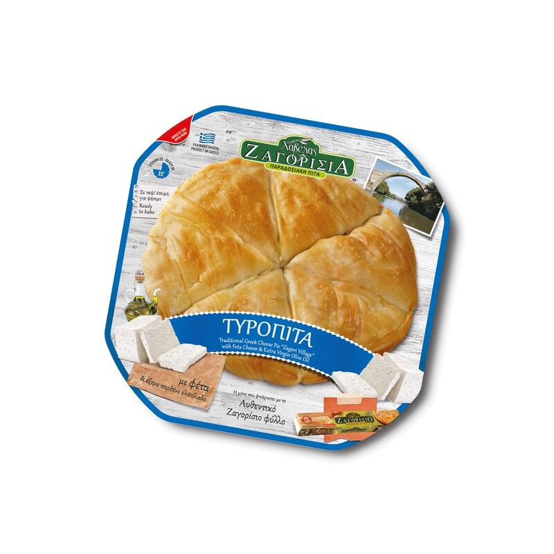 zύμη:αλεύρι σίτου,νερό,άμυλο αραβοσίτου,αλάτι. Γέμιση:τυρί φέτα(30%), (παστεριωμένο αιγοπρόβειο γάλα,πυτιά,χλωριούχο ασβέστιο,αλάτι), μυζήθρα (παστεριωμένο αιγοπρόβειο τυρόγαλα,πασστεριωμένο αιγοπρόβειο ανθόγαλα, αλάτι), ρυζάλευρο,σιμιγδάλι (σίτος), φυτικό έλαιο (έξτρα παρθένο ελαιόλαδο (5%) ηλιέλαιο), φυτική μαργαρίνη(φυτικά έλαια,βαμβακέλαιο,ηλιέλαιο) και φυτικά λίπη (φοινικέλαιο) σε μεταβαλλόμενες αναλογίες,νερό, γαλακτωματοποιητές: μόνο-και δι-γλυκερίδιαλιπαρών οξέων),αλάτι,πιπέρι άσπρο.