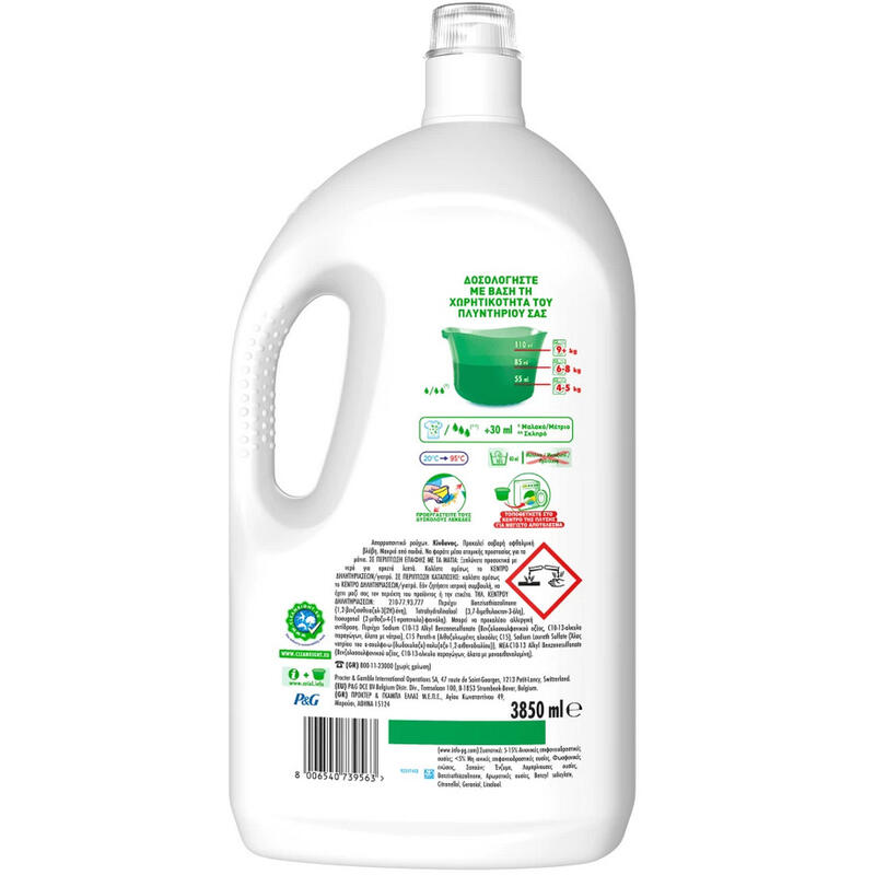 Το υγρό απορρυπαντικό Ariel Alpine προσφέρει εκπληκτική καθαριότητα από την 1η πλύση, ακόμη και στους 30°C. Η σύνθεσή του σχεδιάστηκε ειδικά για πλύσιμο σε κρύο νερό, και συμπεριλαμβάνει την τεχνολογία COLD BOOST. Eπίσης, το υγρό απορρυπαντικό Ariel προσφέρει, στα ρούχα σας φρεσκάδα Alpine που διαρκεί. Επιπλέον, το υγρό απορρυπαντικό Ariel διατίθεται σε 100% ανακυκλώσιμη συσκευασία. Μπορείτε, επίσης, να χρησιμοποιήσετε το υγρό απορρυπαντικό Ariel Alpine μαζί με το πράσινο καπάκι, για να προετοιμάσετε τους λεκέδες. Στη συνέχεια, τοποθετήστε τα ρούχα σας στο πλυντήριο. Για καλύτερα αποτελέσματα, τοποθετήστε το καπάκι δοσολογίας με το απορρυπαντικό ρούχων κατευθείαν στον κάδο του πλυντηρίου.