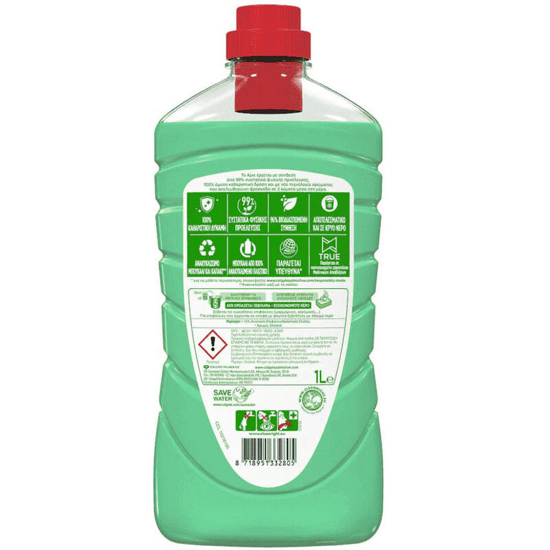 Το Ajax ανανεώνεται με 99% συστατικά φυσικής προέλευσης, 100% καθαριστική δύναμη, χωρίς μικροπλαστικά. Ανακυκλώσιμο μπουκάλι και καπάκι. Μπουκάλι από 100% ανακυκλωμένο πλαστικό. Παρασκευάζεται σε πιστοποιημένο εργοστάσιο μηδενικών αποβλήτων.