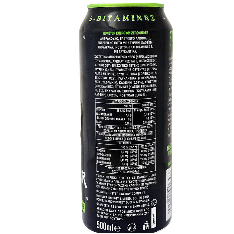 Ανθρακούχο Νερό (Νερό, Διοξείδιο του Άνθρακα), Μέσο Οξύνισης (Κιτρικό Οξύ), Αρωματικές Ύλες, Ταυρίνη (0,4%), Διορθωτικό Οξύτητας (Κιτρικό Νάτριο), Καφεϊνη (0,029%), Γλυκαντικά (Σουκραλόζη, Ακετοσουλφαμικό Κάλιο), Συντηρητικά (Σορβικό Οξύ, Βενζοϊκό Οξύ), Βιταμίνες Β3 (Νικοτιναμίδιο), Β6 (Υδροχλωρική Πυριδοξίνη), Β2 (Ριβοφλαμίνη), Β12 (Κυανοκοβαλαμίνη), Χρωστική (Ανθοκυανίνες), Αλάτι, Γλυκουροναλακτόνη, Εκχύλισμα Σπόρων Γκουαρανά (με καφεΪνη): 0,02%, Ινοσιτόλη: 0,002%, Μαλτοδεξτρίνη από Καλαμπόκι.