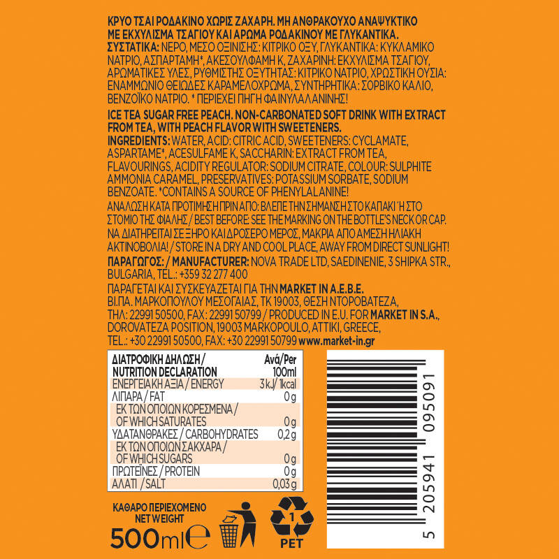 ECONOMY Ice Tea Pοδάκινο Χωρίς Ζάχαρη 500ml