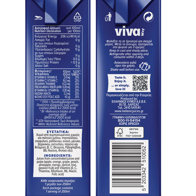 VIVA WAY Φυσικός Χυμός 9 Φρούτα 250ml