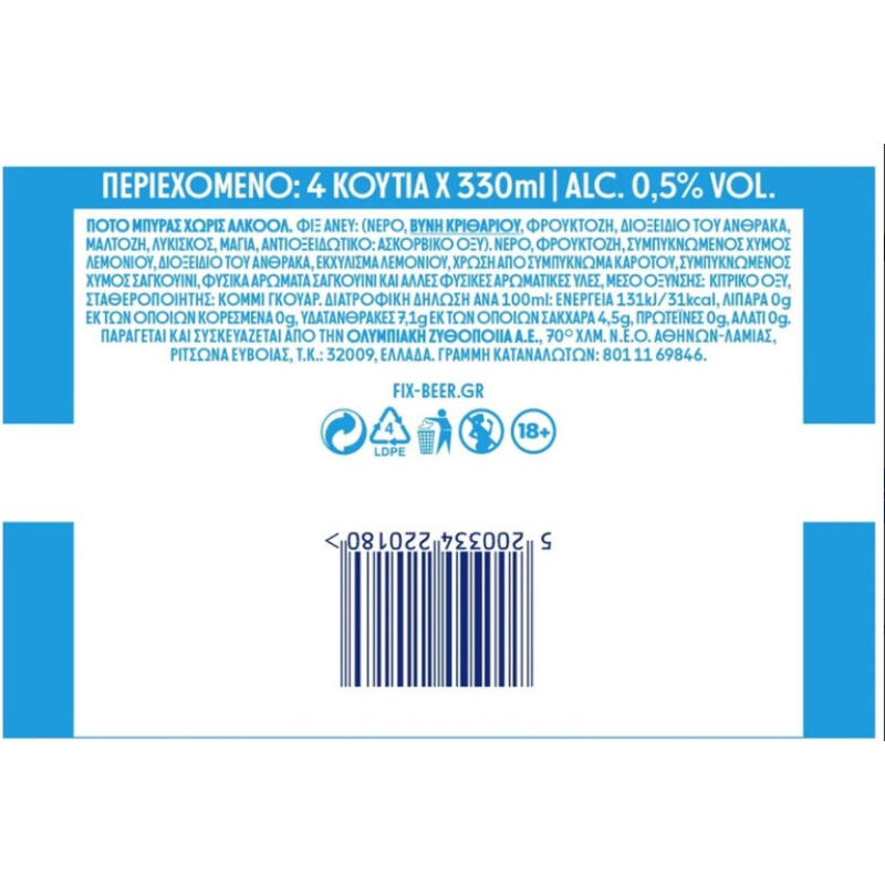 ΦΙΞ ΦΙΞ Άνευ Μπύρα Με Σαγκουίνι Χωρίς Αλκοόλ 4X330ml