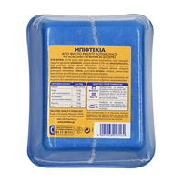 64,1% κρέας από φιλέτο μπούτι κοτόπουλου, νερό, κρεμμύδι, τριμμένη φρυγανιά (περιέχει γλουτένη),, πιπεριά κόκκινη 2,2% , ίνες σίτου (περιέχει γλουτένη), άμυλο σίτου (περιέχει γλουτένη), άμυλο μπιζελιού , πρωτεϊνη γάλακτος ( περιέχει λακτόζη), μαϊντανός, δεξτρόζη, ανάμικτα βότανα, ανάμεικτα μπαχαρικά, κόλιανδρος. σέλινο, μουστάρδα, (περιέχει σινάπι), δυόσμος, φυτικά έλαια (φοινικέλαιο και ηλιέλαιο σε μεταβαλλόμενες αναλογίες). Μπορεί να περιέχει ίχνη από προϊόντα γάλακτος. Προϊόν προψημένο.