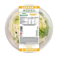 Dressing Caesar's (19%): {Ηλιέλαιο, σκληρό τυρι, χυμός λεμόνι (ΜΕΤΑΔΙΘΕΙΩΔΕΣ κάλιο) ΜΟΥΣΤΑΡΔΑ (νερό, ΣΙΝΑΠΟΣΠΟΡΟΣ, ξίδι, άμυλο αραβοσίτου, αλάτι, σιρόπι γλυκόζης, σταθεροποιητής (κόμμι ξανθάνης), αρωματικές ύλες, χρωστική (κουρκουμίνη), γλυκαντική ύλη (ζαχαρίνη), μηλόξιδο (ΘΕΙΩΔΗ), ελαιόλαδο, μαγιονέζα (φυτικό έλαιο (ηλιέλαιο 70%), νερό, ξίδι από σταφύλια, αλάτι, ζάχαρη, κρόκος ΑΥΓΟΥ αφυδατωμένος, άρτυμα λεμονιού, τροποποιημένο άμυλο, σταθεροποιητές (κόμμι γκουάρ, ξανθανικό κόμμι), συντηρητικά (σορβικό κάλιο, βενζοϊκό νάτριο), αντιοξειδωτικό (άλας του EDTA με ασβέστιο νάτριο)), νερό, αλάτι, μπαχαρικά, συντηρητικά (σορβικό κάλιο, βενζοϊκό νάτριο).