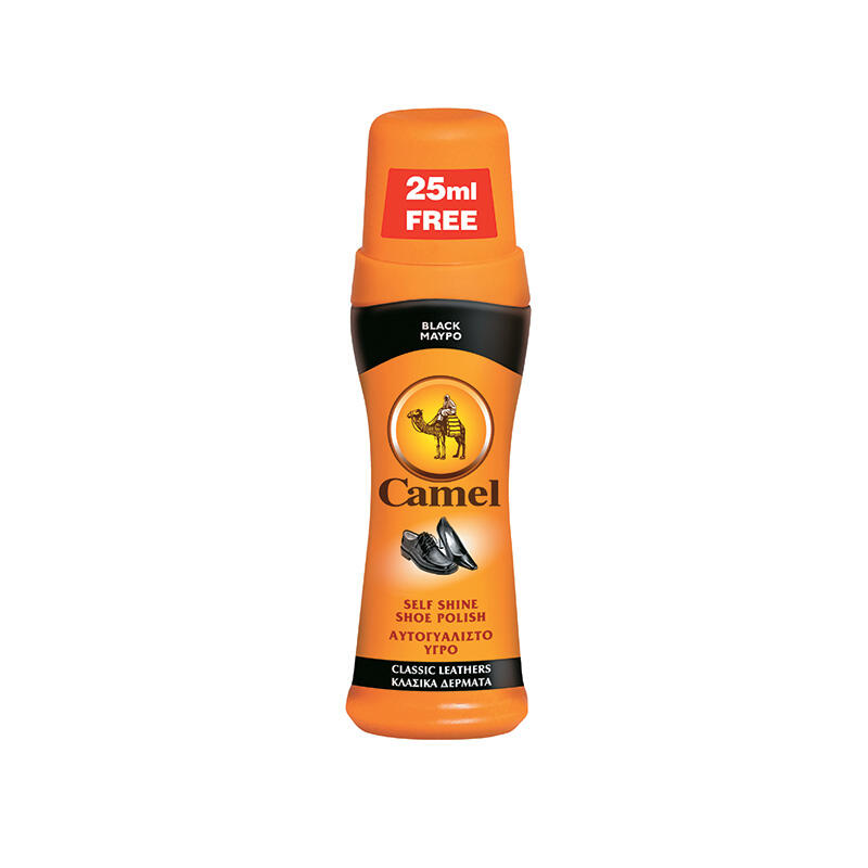 Το υγρό βερνίκι Camel, γυαλίζει και περιποιείται το δέρμα χάρη στο φυσικό κερί που περιέχει. Χρώμα Μαύρο.