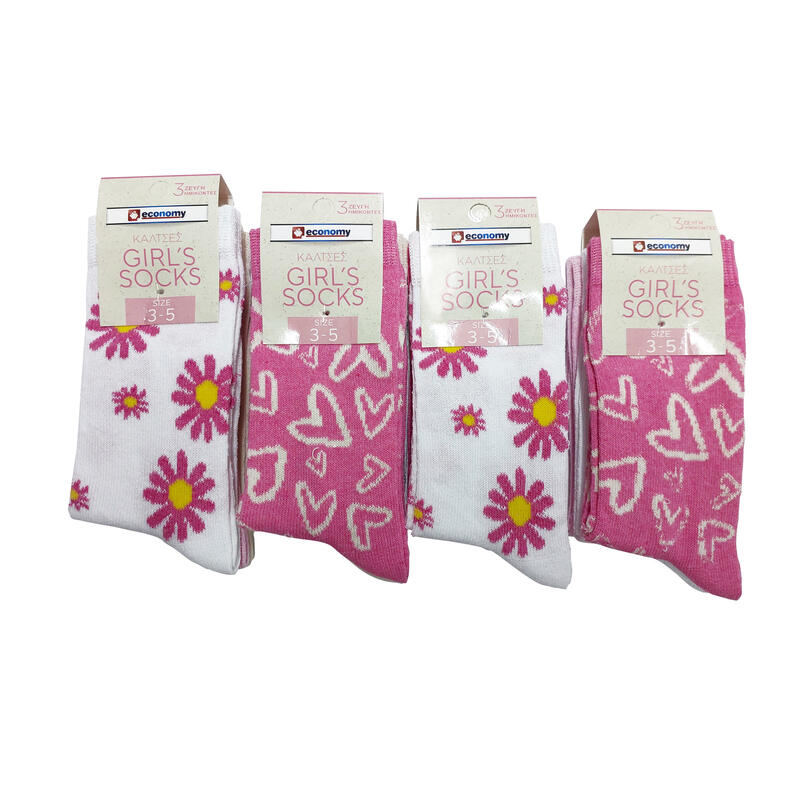 ECONOMY Κάλτσες Μακριές Κορίτσι 3 Ζευγάρια 3-5 Μέγεθος