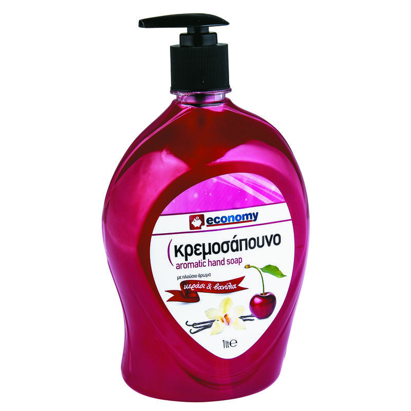 Το υγρό κρεμοσάπουνο ECONOMY με υπέροχο άρωμα ΚΕΡΑΣΙ ΒΑΝΙΛΙΑ περιποιείται και καθαρίζει απαλά τα χέρια σας, χάρη στη σύνθεσή του με γλυκερίνη. Ο πλούσιος αφρός του προσφέρει μια βελούδινη αίσθηση απαλότητας και φροντίδας.