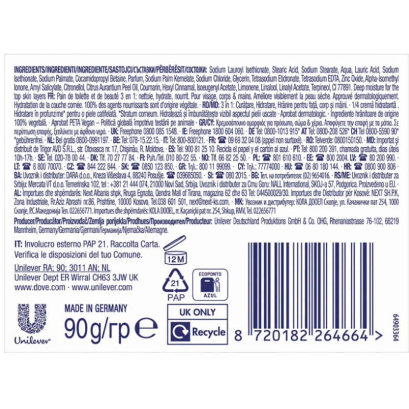 Sodium Lauroyl Isethionate,Stearic Acid, Lauric Acid, Sodioum Palmate,Aqua,Sodium Isethionate,Sodium Stearate, Cocamidopropyl Betaine,Sodium Palm Kernelate, Glycerin,Parfum,Sodium Chloride,Zinc Oxide,Tetrasodium EDTA, Tetrasodium Etidronate, Alpha- Isomethul Ionone, Citronellol, Coumarin, Hexyl Cinnamal,Limonene, Linalool, CI 77891.