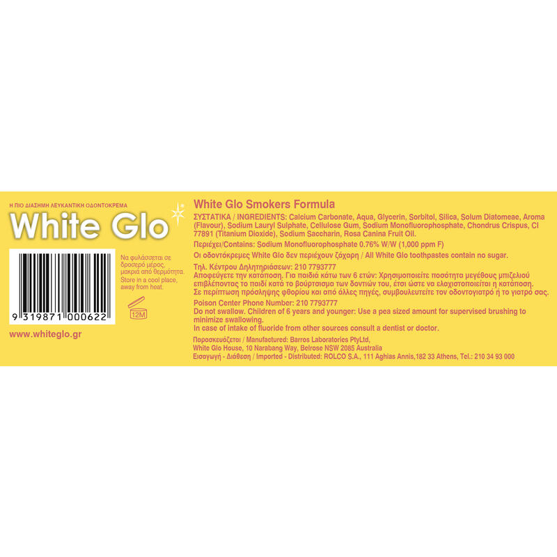 WHITE GLO Smokers οδοντόκρεμα 150 γρ.
