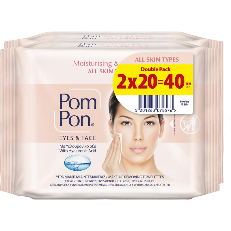 POM PON Υγρά Μαντιλάκια Ντεμακιγιάζ All Skin Types 2x20τμχ