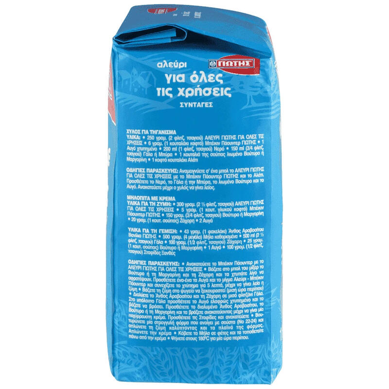 Το καλό αλεύρι αποτελεί το μυστικό επιτυχίας για κάθε παρασκεύασμα, γι’ αυτό η ΓΙΩΤΗΣ προσφέρει το πιο φίνο και εκλεκτό αλεύρι: το Aλεύρι ΓΙΩΤΗΣ για όλες τις χρήσεις. Το αλεύρι ΓΙΩΤΗΣ είναι υψηλής ποιότητας, παρασκευάζεται από διαλεχτό σιτάρι, και δίνει σίγουρη επιτυχία σε κάθε είδους ζύμες, τσουρέκια, ψωμί, τάρτες, πίτες, κουλουράκια και τηγανητά. Εμπιστευθείτε το για να έχει σίγουρη επιτυχία και κάθε δική σας σπιτική δημιουργία.