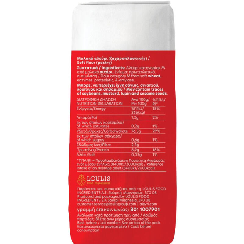 Στοιχεία προμηθευτή: Παράγεται και συσκευάζεται από τη LOULIS FOOD INGREDIENTS Α.Ε. Σούρπη Μαγνησίας, 370 08 - Τηλ.: 801 1007901, E-mail: customer.service@loulisgroup.com, www.alevri.com