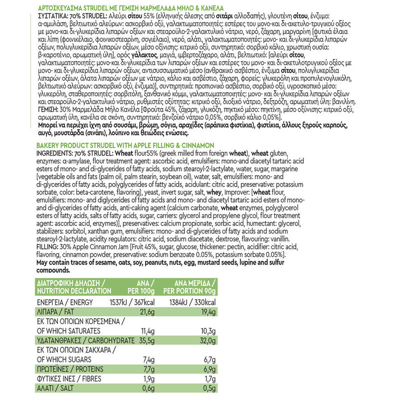 ΜΙΚΡΕΣ ΦΑΡΜΕΣ ΤΟΥ ΒΟΥΝΟΥ ΜΙΚΡΕΣ ΦΑΡΜΕΣ ΤΟΥ ΒΟΥΝΟΥ Strudel με Γέμιση Μήλο & Κανέλα 90γρ
