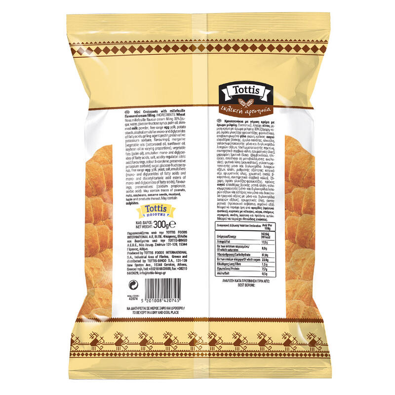 TOTTIS Κρουασανάκια Κρέμα Μιλφέιγ 300 γρ.