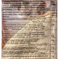 Αλεύρι σίτου 55%, νερό, φυτικό λίπος (φοινικέλαιο), σταθεροποιητές (γλυκερόλη, κόμμι γκουάρ, καρβόξυ-μεθυλοκυτταρίνη), αλάτι, δεξτρόζη, γαλακτωματοποιητές (μόνο- και δι- γλυκερίδια λιπαρών οξέων), διογκωτικά αρτοποιίας (διττανθρακικό νάτριο, διφωσφωρικό νάτριο), σιμιγδάλι ρυζιού, ρυθμιστής οξύτητας (μηλικό οξύ), συντηρητικά (προπιονικό νάτριο, σορβικό κάλιο), βελτιωτικό αλεύρων (L-κυστεΐνη).