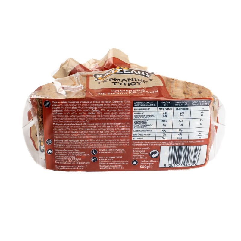 ΚΑΤΣΕΛΗΣ Ψωμί Γερμανικού Τύπου Πολύσπορο Με Σίκαλη & Βρώμη 500 γρ.