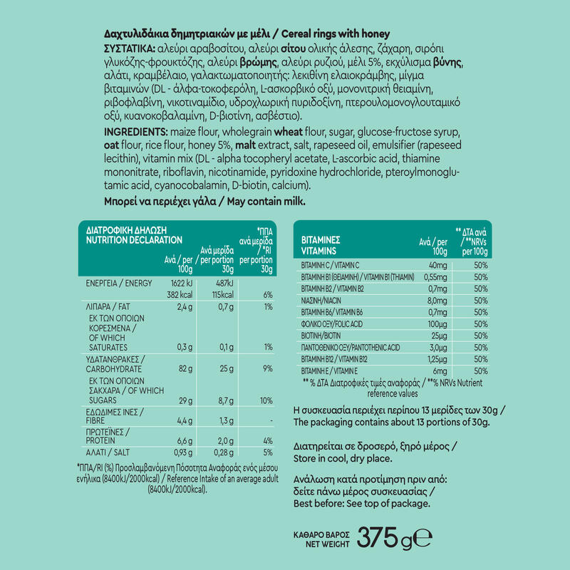 ECONOMY Honey Rings Δημητριακά Δακτυλίδια Μελιού 375gr