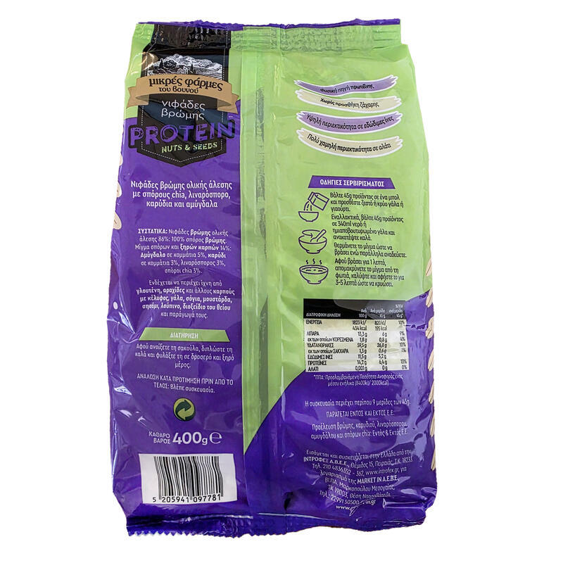 ΜΙΚΡΕΣ ΦΑΡΜΕΣ ΤΟΥ ΒΟΥΝΟΥ Νιφάδες PROTEIN Nuts and Seeds 400γρ