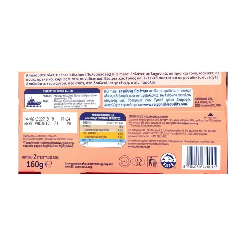 Οι Insalatissime Rio Mare είναι έτοιμα για σερβίρισμα πιάτα, ελαφριά και πλούσια σε γεύση. Παρασκευάζονται αποκλειστικά με τον ποιοτικό τόνο Rio Mare και άλλα πεντανόστιμα υλικά, χωρίς συντηρητικά.