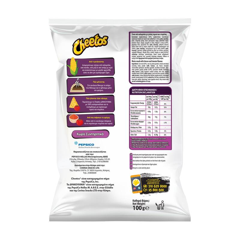 Αραβοσιτάλευρο(55%), αραβοσιτέλαιο, πατατάλευρο, σιτάλευρο(περιέχει παράγωγα από σιτάρι, γλουτένη), τυρί σε σκόνη(4,1%) (περιέχει γάλα), ντομάτα σε σκόνη(3,4%), ρυζάλευρο, γεύση μπέϊκον και κρεμμυδιού[κρεμμύδι σε σκόνη, αλάτι, φρυγανιά σε σκόνη(περιέχει παράγωγααπό σιτάρι), αποβουτυρωμένο γάλα σε σκόνη(περιέχει παράγωγα γάλακτος, λακτόζη), λακτόζη σε σκόνη(περιέχει παράγωγα γάλακτος),ζάχαρη, δεξτρόζη(περιέχει παράγωγα από σιτάρι), αρωματικές ύλες, μαγιά σε σκόνη, ρυθμιστές οξύτητας(άλατα οξικού οξέος με νάτριο, κιτρι-κό οξύ), ενισχυτικό γεύσης(άλατα με νάτριο των 5-ριβοζονουκλεοτιδίων), κραμβέλαιο, σπόροι από σέλινο, αλεύρι βύνης από κριθάρι(περιέχει παράγωγα από κριθάρι), αρτύματα καπνιστών τροφίμων, μπαχαρικά], μαλτοδεξτρίνη(περιέχει σιτάρι), χρωστική(εκχύλισμα πάπρικας), ηλιέλαιο, πάπρικα σε σκόνη.