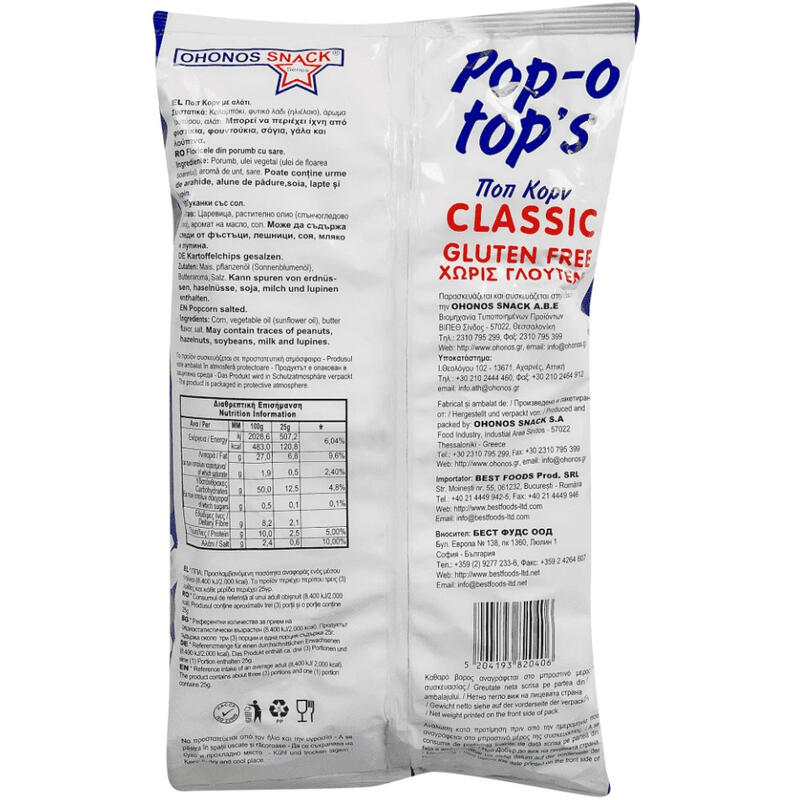 POP-OTOP Pop Corn Classic Χωρίς Γλουτένη 85 γρ.