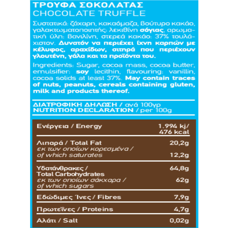 *Η γυαλιστερή όψη της τρούφας, επιτυγχάνεται με σιρόπι, χωρίς χρήση χημικών και συντηρητικών.