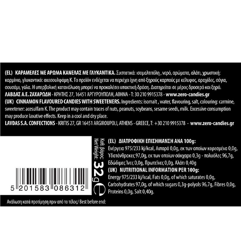 ZERO Καραμέλες Κανέλα 0% Zάχαρη 32g