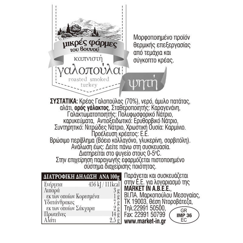 ΜΙΚΡΕΣ ΦΑΡΜΕΣ ΤΟΥ ΒΟΥΝΟΥ Φιλέτο Γαλοπούλας Καπνιστό Ψητό Οβάλ το Κιλό